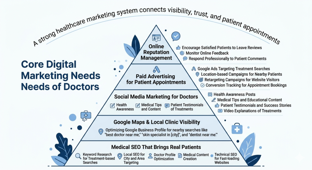 A strong healthcare marketing system connects visibility, trust, and patient appointments.
