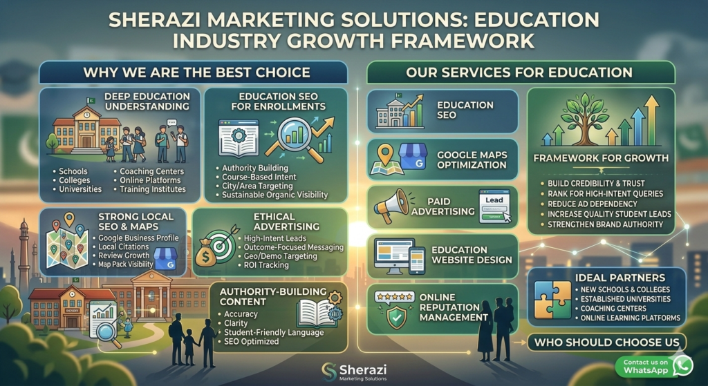 This guide explains what educational marketing needs, what to look for in an agency, and why Sherazi Marketing Solutions is one of the best digital marketing agencies for the education industry in Pakistan.