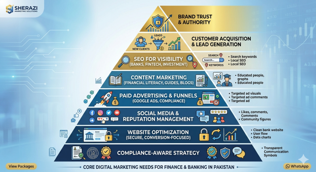 This guide explains what finance marketing requires and why Sherazi Marketing Solutions stands out as one of the best digital marketing agencies for the finance and banking sector in Pakistan.